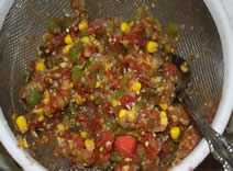 This yummy South American lunch was prepared by Chef Jana in the KU cafe, Impromtu, for my Indigenous Food and Health Class. Seared Trout "a la plancha" on a bed of quinoa fried "rice" garnished with squash salsa. The sauce is comprised of butter flavored with garlic and rocotto (Peruvian red pepper, med heat level.) The quinoa is made like fried rice and the squash salsa has zucchini, yellow squash tossed with yellow onions and tomatoes.