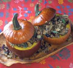 above: Venison, squash, sage, mushroom, and rice-stuffed pumpkins
