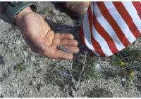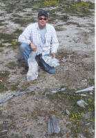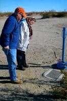 The Mojave was cold and grey on a recent visit to the crash site of North American Aviation B-25D #41-30114 USAAF that crashed killing all three aircrew on 10/2/44. The pilot was 1st Lt George D. Rosado, copilot WASP Marie Michell Robinson, and crew chief S/Sgt Gordon L. Walker. Their mission was listed as "day transition" training for copilot Michell-Robinson. Two eyewitnesses flying nearby in Bell P-39's stated that they saw the B-25D stall and then enter a spin from which there was no recovery. #41-30114 was observed to crash and burn some twenty-five miles west of Victorville AAB. Crash trucks were able to drive to the accident site. There were no survivors. The wreckage was mostly removed following the completion of the coroner’s grim work. In sixty-one years few people have visited the crash site. I had looked for it with Chris Killian and others on a number of occasions without success. Thanks to Mike Lyons I was finally able to find what remained of #41-30114. Joining me was my son Pat J. Macha, and a friend. We were not surprised to find that only about 2% of the B-25D remained, but we were very surprised to find the WASP lapel insignia of Marie Michell Robinson lying in the surface sand undisturbed for more than half a century. The examination of the site yielded a gold ring, coins and part of a bracelet. I had been urged to visit this site because holes had been dug there and concern was expressed that the remaining wreckage was going to be removed. The holes we observed did not seem recent, and hopefully the site will continue to remain unnoticed. Should efforts fail to return all personal effects to next of kin the artifacts, Texas. Marie Michell Robinson was only twenty at the time of her death. With our Nation's flag temporarily placed at the center of the crash site, we paused to honor the crew of B-25D #41-30114. We then departed just ahead of the heavy rains to come.