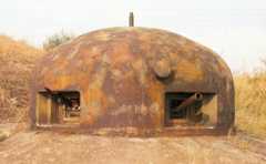 ![]() cloche GFM type A transformée B (la principale différence avec la cloche GFM type A concerne l'affût de l'arme qui comporte désormais une rotule mieux protége des tirs directs):
