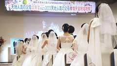 世界平和統一家庭連合(旧統一教会)は7日、教団本部がある韓国で合同結婚式を開いた。教団によると、...世界平和統一家庭連合(旧統一教会)は7日、教団本部がある韓国で合同結婚式を開いた。教団によると、日本の約550人を含め56カ国から約2600人が参加した。この日は東京都内でも約200人が参加して合同結婚式が開かれ、韓国の式典の様子が中継された。韓国での式典は、ソウル中心部から北東約50キロに位置する京畿道加平の教団施設「清心平和ワールドセンター」で行われ、開始の数時間前から大型バスが続々と到着した。