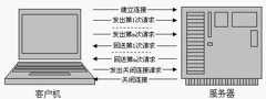 一个WEB站点每天可能要接收到上百万的用户请求,为了提高系统的效率,HTTP 1.0规定浏览器与服务器只保持短暂的连接,浏览器的每次请求都需要与服务器建立一个TCP连接,服务器完成请求处理后立即断开TCP连接,服务器不跟踪每个客户也不记录过去的请求。但是,这也造成了一些性能上的缺陷,例如,一个包含有许多图像的网页文件中并没有包含真正的图像数据内容,而只是指明了这些图像的URL地址,当WEB浏览器访问这个网页文件时,浏览器首先要发出针对该网页文件的请求,当浏览器解析WEB服务器返回的该网页文档中的HTML内容时,发现其中的<img>图像标签后,浏览器将根据<img>标签中的src属性所指定的URL地址再次向服务器发出下载图像数据的请求,如图3.3所示。
