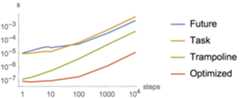 Futures have an algebraic theory, so we can reason about them algebraically. Namely, they form an applicative functor which means that two futuresx andy make a composite future that doesx andy in parallel. They also compose sequentially since they form a monad.
