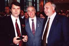 Виктор Ющенко, Анатолий Мокренко и Виталий Карпенко на Всемирном форуме украинцев в Киеве, 1999 год