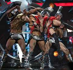 ![]() Бывшая «ВИА Гра» привезла в Москву все: и дорогущую конструкцию из колес, и танцоров, одетых в костюмы римских легионеров, и футболки имени себя, и социальный проект в поддержку угнетенных женщин, и даже песню «Вe my Valentine», переведенную на русский язык, — «Парень, парень, ты ниче», но чего-то ей явно не хватило Фото УНИАН |