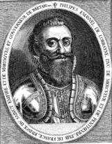 Guerre de la Ligue en Bretagne -Historique[1]. Entre 1589 et 1598, la Bretagne est touchée par les troubles de la Ligue. Sébastien de Luxembourg, Duc de Penthièvre, est gouverneur de la Bretagne en 1564. Participant à la bataille de Saint-Jean d'Angely en 1568, il fut blessé et mourut de ses blessures. Son corps fut porté dans l'église des Cordeliers de Guingamp. Il avait épousé Marie de Beaucaire dont il eut Marie de Luxembourg (°Lamballe 15.10.1562-+Paris 06.09.1623). Celle-ci épousa Philippe Emmanuel de Lorraine, Duc de Mercoeur en lutte contre Henri IV à la mort d'Henri III, assassiné le 2 août 1589. Le Duc de Mercœur songeait à restaurer le Duché de Bretagne en sa faveur, soutenu par Philippe II d'Espagne. Mais Henri IV parvint à conserver cette province et le 10 mars 1601, le Duc de Mercoeur, gouverneur de Bretagne et dernier des Ligueurs, demande la paix et fit sa soumission à Henri IV. Philippe quitte la France et se met au service de Rodolphe, roi de Hongrie pour combattre les Turcs en Styrie; il meurt de fièvre maligne à Nuremberg en 1602 à l'âge de 44 ans. Sa fille, Françoise de Lorraine est promise à César de Vendôme, fils naturel d'Henri IV et de Gabrielle d'Estrées, qui de fait succédera dès 1608 à son beau-père en tant que Duc de Mercoeur et gouverneur de Bretagne.