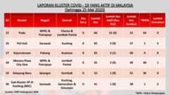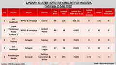 Terdapat 5 kluster yang melaporkan kes baharu positif Covid-19 iaitu: