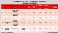 Ingin dimaklumkan bahawa terdapat satu kluster baharu yang telah dikesan di Depot Tahanan Imigresen di Sepang. Sehingga 25 Mei 2020 jam 12 tengah hari, sebanyak 1,449 sampel telah diambil di mana: