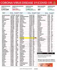Negara Brazil walaupun negara kedua tertinggi di dunia bagi kes positif COVID-19, namun dari segi kes harian negara dari Amerika Latin ini merupakan yang tertinggi sekali di dunia iaitu 53,345 kes dan juga mencatatkan kematian harian tertinggi dunia iaitu 2,280 kes. Kedudukan kadar kematian negara ini adalah pada tangga ke 36 iaitu 5.99%.