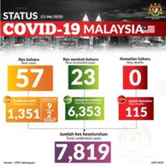 Jumlah keseluruhan kes dilaporkan di Malaysia: 7,819