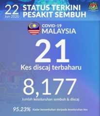 Terdapat 54 negara yang mempunyai kadar kesembuhan 90% ke atas dan kadar kesembuhan Malaysia pada hari ini adalah 95.23%.