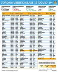 Dari 18 negara yang mempunyai jumlah kes melebihi 100 ribu kes, hanya tujuh negara iaitu Amerika Syarikat, Brazil, India, Rusia, Bangladesh, Chile dan Mexico yang mempunyai jumlah kes harian 5000 ke atas.