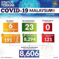 Hari ini genap 17 hari sejak Perintah Kawalan Pergerakan Pemulihan (PKPP) dikuatkuasakan bermula 10 Jun 2020. Sukacita KKM memaklumkan bahawa kes baharu #COVID19 harian telah mencapaisatu angka selama empat hari berturut-turut mulai 23 Jun 2020. Malahan, kes harian penularan dalam negara dalam kalangan warganegara Malaysia adalah kurang daripada lima kes bagi enam hari berturut-turut Untuk pertama kalinya sejak Perintah Kawalan Pergerakan (PKP) dikuatkuasakan,kes aktif adalah kurang daripada 200 pada hari ini.