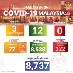 Sehingga 16 Julai 2020 jam 12 tengah hari, seramai 868,394 individu telah disampel untuk #COVID19 di Malaysia, iaitu bersamaan dengan 27.14 individu bagi setiap 1,000 populasi.