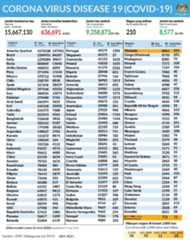 Negara Amerika Syarikat, Brazil dan India adalah negara yang mencatatkan kes harian yang tinggi iaitu antara 50 ribu hingga 70 ribu kes.