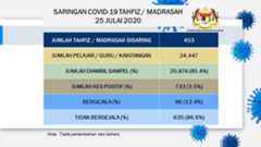 Sehingga 25 Julai 2020, terdapat dua (2) kes positif dan 10 orang kontak rapat telah dikenalpasti dalam kluster ini. Semua 10 orang kontak rapat telah disaring dan masih menunggu keputusan. Siasatan dan akitiviti pengesanan kontak rapat secara aktif (active case detection) sedang diteruskan. Punca jangkitan kluster masih di dalam siasatan.