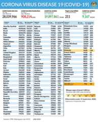 Kes COVID-19 pada masa kini telah mencecah 28 juta kes. Jumlah kes harian dunia pada kali ini menunjukkan peningkatan iaitu sekitar 287,000 kes berbanding sebelumnya 261,000 kes.