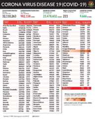 Kes COVID-19 pada masa kini telah mencecah 32.1 juta kes dan jumlah kes harian menunjukkan penurunan iaitu sekitar 306,000 kes berbanding sebelumnya kira-kira 308,000 kes.