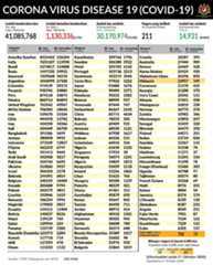 Jumlah kes COVID-19 pada ketika ini adalah 41.1 juta kes dengan jumlah kematian 1.13 juta kes dan kesembuhan 30.2 juta kes.