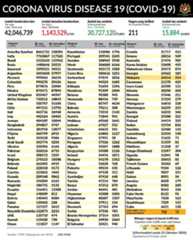Jumlah kes dunia adalah 42.05 juta kes dengan kematian 1.14 juta kes dan kesembuhan 30.7 juta kes.