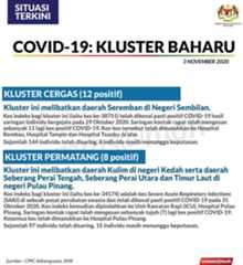 2 kluster baharu dikesan hari ini adalah Cergas (N.Sembilan) dan Permatang (Kedah&P.Pinang). Secara keseluruhan, kes positif dari kedua kluster ini 20. Daripada 241 kes yang disaring, hanya 21 yang masih menunggu keputusan.