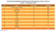 Ringkasan Status Terkini COVID-19 Di Malaysia, 03 November 2020