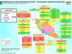 - Daerah warna merah: ada 41 kes atau lebih dlm 14 hari