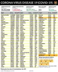 Lebih 55 juta penduduk dunia telah dijangkiti wabak COVID-19. Daripada jumlah tersebut, sebanyak 1,333,462 kes kematian direkodkan.