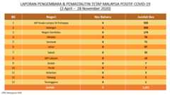 Ringkasan Status Terkini COVID-19 Di Malaysia, 28 Nov 2020