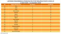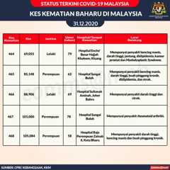 Ringkasan Status Terkini COVID-19 Di Malaysia, 31 Disember 2020