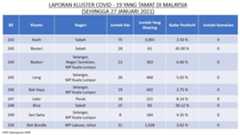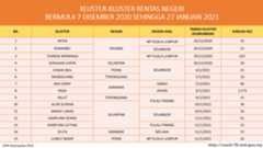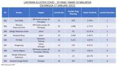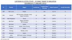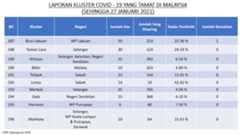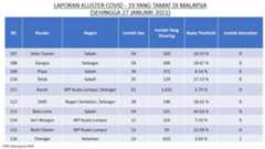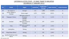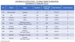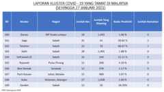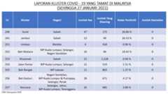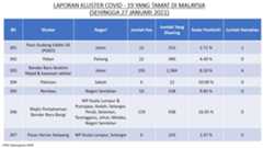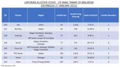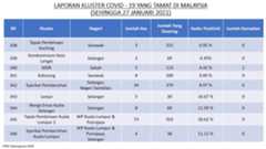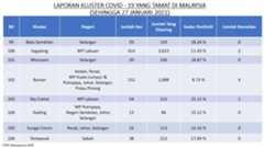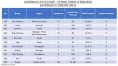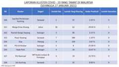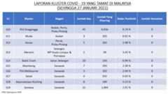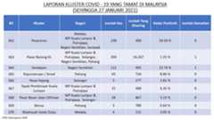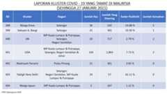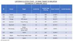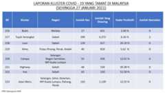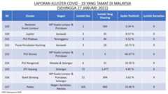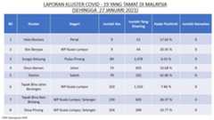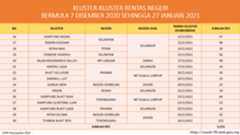 Berikut adalah maklumat terkini berkaitan kluster-kluster di Malaysia sehingga 27 Januari 2021;