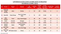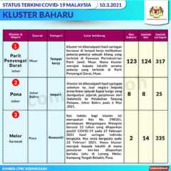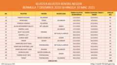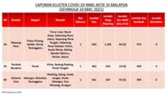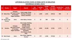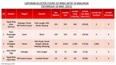Berikut adalah maklumat terkini berkaitan kluster-kluster di Malaysia sehingga 10 Mac 2021: