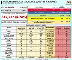 Ringkasan Status Terkini COVID-19 Di Malaysia, 10 Mac 2021