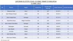 Berikut adalah maklumat terkini berkaitan kluster-kluster di Malaysia sehingga 21 Mac 2021: