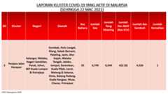 Berikut adalah maklumat terkini berkaitan kluster-kluster di Malaysia sehingga 22 Mac 2021: