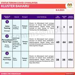 Berikut adalah maklumat terkini berkaitan kluster-kluster di Malaysia sehingga 8 April 2021: