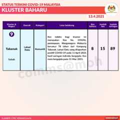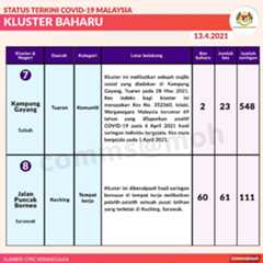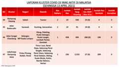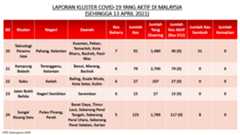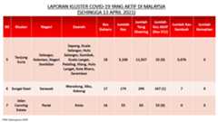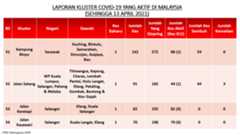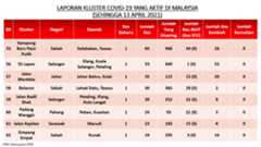Berikut adalah maklumat terkini berkaitan kluster-kluster di Malaysia sehingga 13 April 2021: