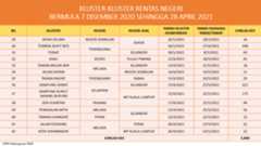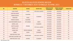 Berikut adalah maklumat terkini berkaitan kluster-kluster di Malaysia sehingga 28 April 2021: