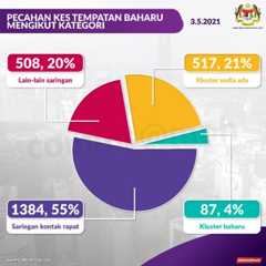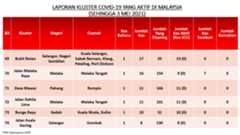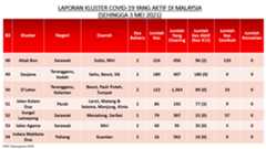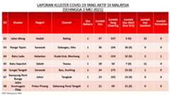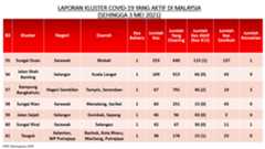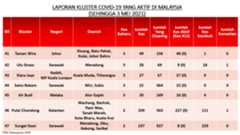 Berikut adalah maklumat terkini berkaitan kluster-kluster di Malaysia sehingga 3 Mei 2021: