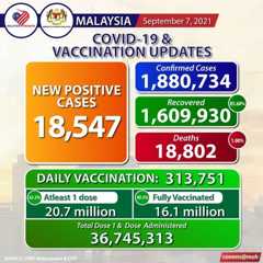 Status terkini Kapasiti & Penggunaan Katil COVID-19, Pemberian Vaksin & Kes Baharu Sehingga 7 September 2021: