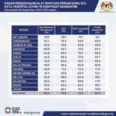 Status terkini Kapasiti & Penggunaan Katil COVID-19, Pemberian Vaksin & Kes Baharu Sehingga 22 September 2021:
