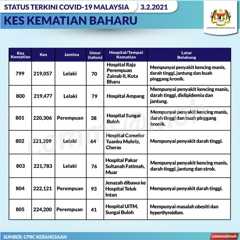 Ringkasan Status Terkini COVID-19 Di Malaysia, 03 Februari 2021