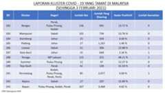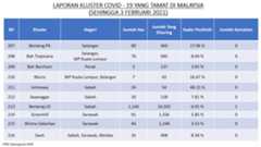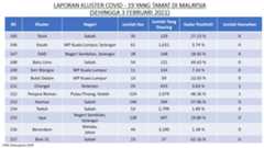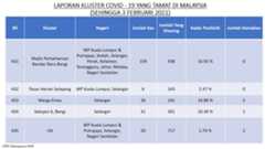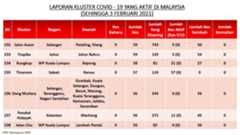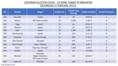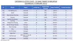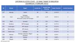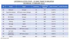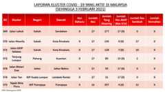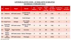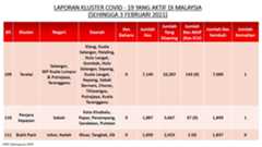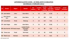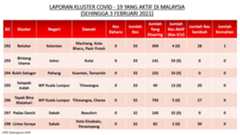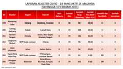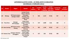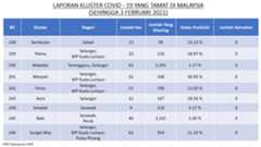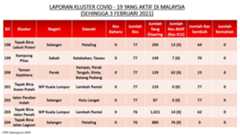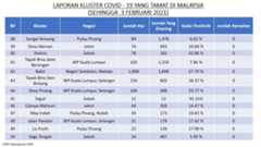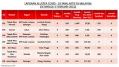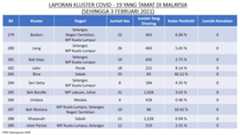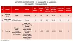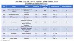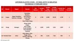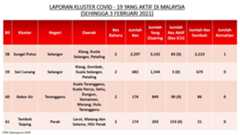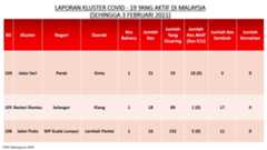 Berikut adalah maklumat terkini berkaitan kluster-kluster di Malaysia sehingga 3 Februari 2021;