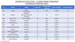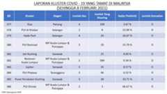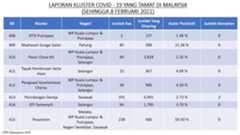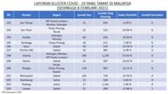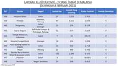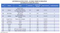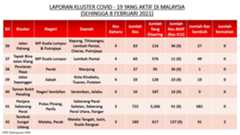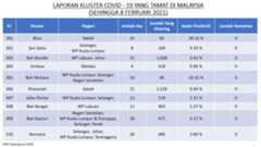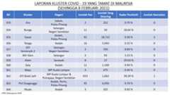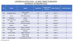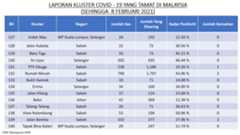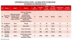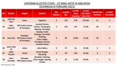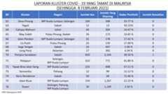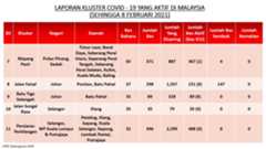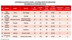 Berikut adalah maklumat terkini berkaitan kluster-kluster di Malaysia sehingga 8 Februari 2021;