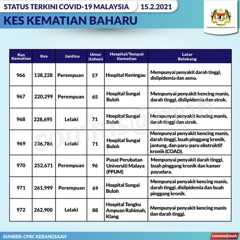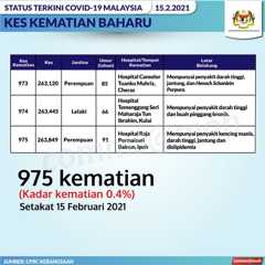 Ringkasan Status Terkini COVID-19 Di Malaysia, 15 Februari 2021