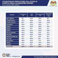 - Kes yang memerlukan rawatan di Unit Rawatan Rapi (ICU):273 kes (202 kes disahkan COVID-19; 71 kes disyaki, kemungkinan, dan kes dalam siasatan);