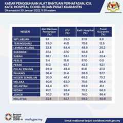 - Kes yang memerlukan rawatan di Unit Rawatan Rapi (ICU):120 kes (103 kes disahkan COVID-19; 17 kes disyaki, kemungkinan, dan kes dalam siasatan);
