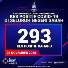 Perincian 970 kes positif COVID-19 baharu yang dilaporkan di Malaysia pada 25 November 2020 adalah seperti berikut: