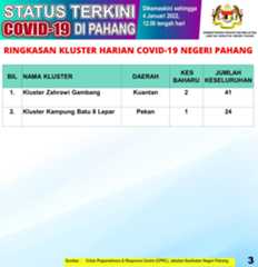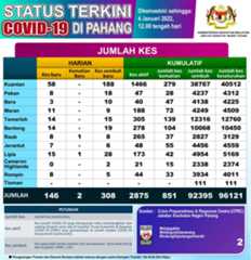 Kemaskini Negeri COVID-19 di Malaysia 04 JAN 2022