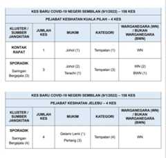 Kes positif baharu= 14 kes (Tempatan: 12, Import/Lokap/DTS: 2)